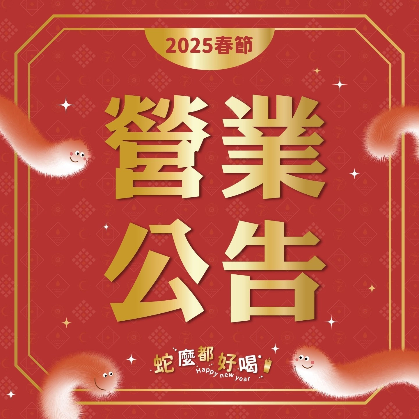 春節連假 宜 飲料人自由,單純想喝、解油膩、填飽肚子,都可以👍 𝕀𝕗 𝕌 𝕎𝕒𝕟𝕥 🥤 想喝點蛇麼🐍,就到七盞茶吧! 春節連假有調整營業時間,請留意門市營業時間唷😀 【台北】 7️⃣士林旗艦店 1/25(六)~ 1/26(日):12:00-23:00 1/27(一):11:00-23:00 1/28(二):除夕公休 1/29(三)~ 1/31(五):15:00-23:00 2/01(六)~2/02(日):12:00-23:00 7️⃣中山南西店 1/25(六)~1/27(一):11:00-22:00 1/28(二):除夕公休 1/29(三)~2/02(日):12:00-21:00 7️⃣中山吉林店 請詳見該門市公告資訊 7️⃣士林延平店 1/25(六)~1/27(一):10:30-22:00 1/28(二)~1/30(四):10:30-18:00 1/31(五)~2/02(日):10:30-22:00 7️⃣中正杭州店 1/25(六):10:00-22:00 1/26(日):10:00-21:00 1/27(一)~ 1/28(二):11:00-24:00 1/29(三)~2/01(六):春節公休 2/02(日):11:00-19:00 7️⃣信義莊敬店 1/25(六)~1/27(一):11:00-21:30 1/28(二):12:00-17:00 1/29(三):春節公休 1/30(四)~2/01(六):11:00-21:30 2/02(日):春節公休 7️⃣內湖江南店 請詳見該門市公告資訊 7️⃣大安復興南店 1/25(六)~2/02(日):春節公休9天 7️⃣北投中央北店 1/25(六)~ 1/31(五):11:30-20:00 2/01(六):11:30-15:30 2/02(日):11:30-20:00 7️⃣中山林森店 1/25(六)~1/27(一):11:00-00:30 1/28(二)~1/29(三):春節公休2天 1/29(四)~2/02(日):11:00-00:30 【新北】 7️⃣淡水中正店 1/25(六)~1/27(一):11:00-22:00 1/28(二):10:00-18:00 1/29(三)~2/02(日):12:00-22:00 7️⃣新莊後港店 1/25(六)~1/29(三):10:00-21:00 1/30(四)~2/02(日):春節公休4天 7️⃣泰山明志店 請詳見該門市公告資訊 7️⃣蘆洲光華店 1/25(六)~1/26(日):11:00-22:00 1/27(一)~2/02(日):春節公休7天 7️⃣新莊化成店 1/25(六):10:00-22:00 1/26(日):11:00-21:00 1/27(一):09:00-22:00 1/28(二)~2/02(日):11:00-20:50 7️⃣新店中正店 1/25(六)~1/27(一):10:00-22:00 1/28(二):11:00-16:00、20:00-24:00 1/29(三)~ 2/01(六):12:30-20:30 2/02(日):10:00-22:00 7️⃣林口文化店 1/25(六):10:00-21:00 1/26(日)~1/27(一):10:00-20:30 1/28(二)~2/02(日):春節公休6天 7️⃣中和南華店 1/25(六)~1/27(一):11:00-21:00 1/28(二)~ 1/31(五):春節公休4天 2/01(六)~2/02(日):11:00-21:00 7️⃣三重三民店 1/25(六):10:30-20:30 1/26(日):11:00-20:00 1/27(一):10:30-20:30 1/28(二):10:30-16:00 1/29(三):12:30-19:00 1/30(四):12:30-19:00 1/31(五)~2/01(六):春節公休 2/02(日):11:00-20:00 7️⃣新店安康店 1/25(六)~1/27(一):11:00-21:30 1/28(二):12:00-16:00 1/29(三)~1/30(四):12:30-20:30 1/31(五):春節公休 2/01(六):12:30-20:30 2/02(日):11:00-21:30 7️⃣板橋民生店 1/25(六)~1/26(日):10:00-23:00 1/27(一):10:00-22:00 1/28(二)~1/31(五):春節公休4天 2/01(六)~2/02(日):10:00-23:00 7️⃣淡水新春店 請詳見該門市公告資訊 【桃園】 7️⃣中壢光明店 1/25(六)~1/27(一):10:00-21:00 1/28(二)~1/31(五):春節公休4天 2/01(六) ~2/02(日):11:00-20:00 7️⃣桃園大興店 1/25(六)~1/26(日):10:00-21:00 1/27(一)~2/01(六):春節公休6天 2/02(日):10:00-21:00 7️⃣觀音大觀店 1/25(六):10:00-21:00 1/26(日):13:00-21:00 1/27(一):10:00-21:00 1/28(二)~1/29(三):春節公休2天 1/30(四)~2/02(日):10:00-21:00 【新竹】 7️⃣新竹西大店 1/25(六)~1/27(一):10:30-21:00 1/28(二)~1/31(五):春節公休4天 2/01(六)~2/02(日):10:30-21:00 【台中】 7️⃣北區三民店 1/25(六)~1/26(日):10:00-23:00 1/27(一):10:30-22:00 1/28(二)~2/02(日):春節公休6天 【台南】 7️⃣永康中華店 1/25(六):10:00-20:00 1/26(日):固定店休 1/27(一):09:00-20:00 1/28(二)~2/02(日):春節公休6天 【高雄】 7️⃣岡山維仁店 請詳見該門市公告資訊 7️⃣林園仁愛店 1/25(六):09:00-17:00 1/26(日):固定店休 1/27(一)~1/31(五):09:00-17:00 2/01(六):春節公休 2/02(日):固定店休 7️⃣三民陽明店 1/25(六)~1/27(一):09:00-20:00 1/28(二)~2/02(日):10:00-19:30 7️⃣小港水秀店 1/25(六)~1/27(一):10:00-21:30 1/28(二)~1/31(五):10:00-19:30 2/01(六)~2/02(日):10:00-21:30 【花蓮】 7️⃣花蓮中正店 1/25(六):10:00-22:00 1/26(日):10:00-21:00 1/27(一):固定店休 1/28(二):10:00-17:00 1/29(三)~1/30(四):春節公休 1/31(五)、2/01(六):10:00-22:00 2/02(日):10:00-21:00 - ▸七盞茶門市◂https://seventea.tw/fb00fANNv ▸線上點餐◂https://seventea.tw/fb00FRbuy ▸𝘓𝘐𝘕𝘌@◂https://seventea.tw/fb00ImUjq ▸𝘐𝘎◂https://seventea.tw/fb00oNJZn - #七盞茶 #以茶佐日子 #有事沒事七盞茶 #蛇麼都有 #蛇麼都喝 #但請確認營業時間以免撲空 #CNY #春節 #過年 #新年快樂 #連假 #手搖 #飲料 #年菜 #家人 #團圓